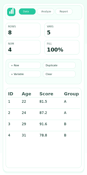 Every analysis in SPSS Lite is saved in a timestamped log, keeping session records organized. Compare variables, test ideas, and review results easily.